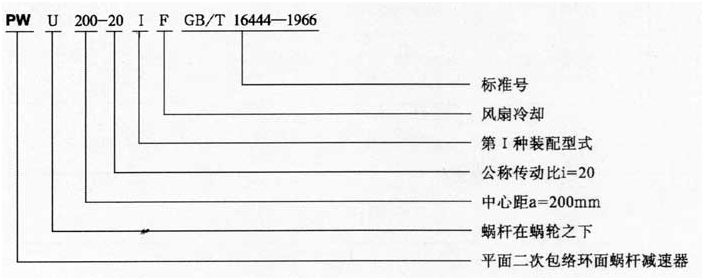 二、平面二次包絡(luò)減速機(jī)型號(hào)、中心距、傳動(dòng)比、標(biāo)記